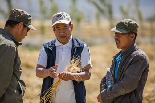 2017年9月是新疆哈密的小麦收割季,全国人大代表、治土人党永富在田间考察化肥减量、农业提质的实际效果。