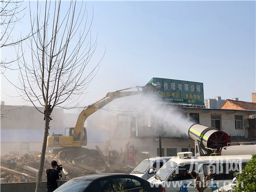 中华龙都网讯(周口报业全媒体记者 张劲松 通讯员 苗露雯 苏千)3月13日,记者在东新区文昌办事处罗庄社区征迁现场看到,10余台拆除机械齐上阵,雾炮车同时降尘,该社区征迁工作已经进入大面积拆除阶段。