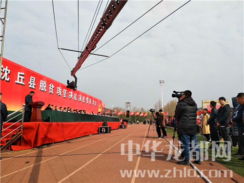 中华龙都网讯(周口报业全媒体记者韦伟 通讯员王佳佳)2018年3月16日10点,沈丘县新区广场,一场近万人参与的脱贫攻坚决战决胜誓师大会正在有序推进。