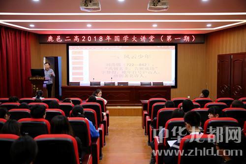 中华龙都网讯(记者李瑞才 通讯员 刘宏彬 文图)为传承和弘扬中华传统文化,加强国学教育,提高学生诗词鉴赏能力,品味古典诗词名家的智慧人生。3月15日晚,鹿邑二高以《古典诗词名家的创作与人生》为主题的2018国学大讲堂在四楼报告厅开讲,全校200多名古典诗词爱好者参加了此次活动。