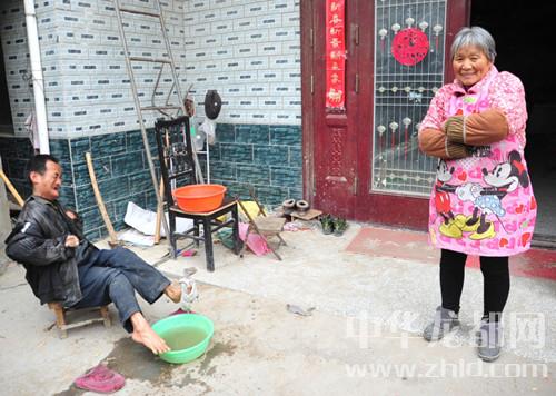 中华龙都网讯(周口报业全媒体记者 李瑞才 通讯员 胡洪涛文/图)张红印是鹿邑县鸣鹿办事处麻窝张村一名低保重度残疾人,今年44岁,他一岁时患小儿麻痹症导致四肢和大脑残疾,双臂萎缩、双腿僵硬,走起路来摇摇晃晃,只有两只脚能用上,勉强趔趔趄趄走路。“这孩子起小得病,他是老大,我七个孩子,没钱看病,小时候也没少费劲,到十岁才发现他想干些活,发现他会烧锅。然后我就想他手不能用还有脚,我要教会他,我死后起码他能自己生活。”妈妈李新兰抹着泪说。