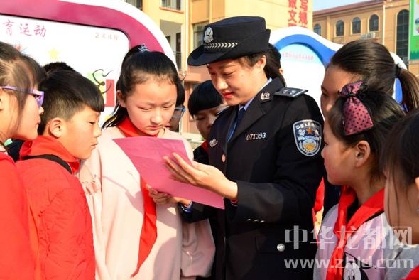 中华龙都网讯 (周口报业全媒体记者 谢永静 通讯员 李龙喜)3月26日,扶沟县公安局城郊派出所民警走进县实验小学,开展送法律进校园活动,向学生宣传未成年人保护法、禁毒法等法律知识,教育引导学生增强法制意识。