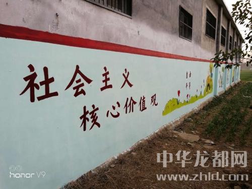 中华龙都网讯(周口报业全媒体记者张劲松通讯员吴玉瑾文/图)十九大精神、社会主义核心价值观等公益性广告宣传文字和图画通过墙壁上一幅幅彩绘鲜活地展示出来。这是记者25日在东新区许湾乡张埠口行政村看到的一幕。