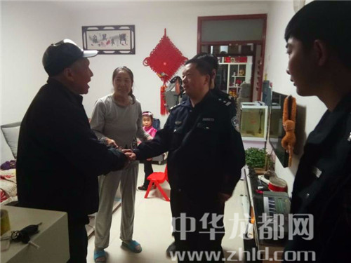 民警一边安抚老人情绪,一边进一步与老人沟通,得知其子名叫赵冬明,在周口市开发区地税局工作。老人没有记住家人电话、无法联系,民警于是开车将老人送至周口市开发区地税局家属院,经多方打听终于找到老人儿子赵冬明家,将老人安全送到家中。老人激动的热泪盈眶,并向民警表示感激。
