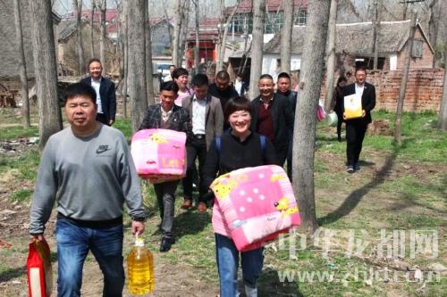 上午11点,在志愿者王刚的组织下,赵亮、程桂菊、宋东风等志愿者、爱心人士驱车来到太康县逊母口镇刘桥行政村邵庄,给重病患者张肖送“爱心款”。