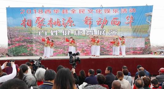 中华龙都网讯(周口报业全媒体记者 张猛)在西华县第十四届桃花节期间,由县委宣传部、县文广新局主办的“相聚桃源 舞动西华”百姓健康舞展演活动,在黄桥乡万亩桃园举行,来自全县的10 余支舞蹈队参加展演。活动吸引众多市民、游客前来观看。