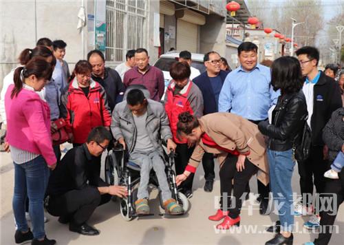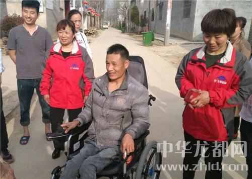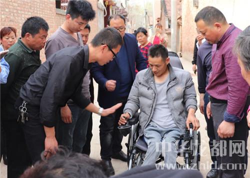 中华龙都网讯(周口报业全媒体记者 李瑞才 通讯员刘传保 胡洪涛图文)前不久,本网曾报道了鹿邑太清宫镇男子王成涛因从10楼坠落致瘫痪,自愿捐出器官救别人的事迹,看到报道后,许多网友纷纷称赞王成涛。为了方便王成涛活动,近日,在鹿邑县委宣传部、县文明办的倡导和参与组织下,鹿邑星宇电子商务有限公司的总经理王朝华、郭彦山,副总经理孙永建等人来到了太清宫镇杨桥村,专门为王成涛送来他们在网上订购的电动轮椅。