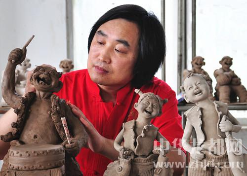 从发现泥人碰撞易碎、遇水易损,张振福便历尽艰辛、反复尝试,终于像烧砖头一样,把泥塑烧成了陶塑;然而,从土黄色变成了砖瓦色,陶塑的颜色仍然单一、呆板,不能展示出泥塑的深层次神韵。于是,张振福大胆地将泥塑与钧瓷结合起来,创造了一个不一样的艺术世界。