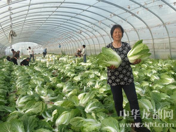 4月16上午,在沈丘县周营镇的联帮专业种植合作社,姜桂芝等10多名贫困户正在采收反季节生态大白菜。近年来,该镇按照选好能人、选好产业、搭好平台、带富群众的产业发展思路,采取“村集体经济组织+专业合作社+基地+贫困户”的科学运作模式,着力发展生态瓜果蔬菜、精品花卉栽培、优质中药材种植等特色产业,以此带动贫困户稳定脱贫致富。 (中华龙都网记者 韦伟 摄)