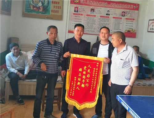 中华龙都网讯(周口报业全媒体记者 付永奇 通讯员 胡书广)4月19日,商水县张明乡闫庄行政村贫困户王改霞家人将一面写有“人民好公仆,党的好干部,群众贴心人”的锦旗送到闫庄行政村村室,感谢商水县交通局派出的驻村“第一书记”王秋生长期以来对她们一家的关心和帮助。