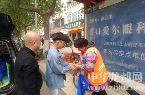 中华龙都网讯(周口报业全媒体记者 徐启峰)4月21日,上午9时,天色阴沉,雨随时要落下的样子。“光头哥”和他的儿子开车上路,他们要在市区转一圈,给所有遇到的环卫工人送一个水杯,一条毛巾。
