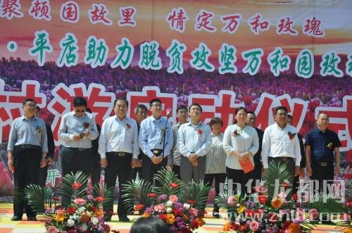 中华龙都网讯(周口报业全媒体记者 付永奇 通讯员 赵永昌)4月28日上午,商水县平店乡在雒庄村以“相聚顿国故里、情定万和玫瑰”为主题举办“2018商水●平店助力脱贫攻坚万和园玫瑰有约乡村游启动仪式”。县委常委、宣传部长李本磊,县人大常委会副主任李峰,副县长何海中、韩秀娟,原政协副主席司新国等领导出席会议。该乡1600多亩玫瑰花卉花竞相绽放,花香四溢,吸引了省内外1200余名游客前来赏花、拍照、游玩,省市县新闻媒体进行了现场采访报道。