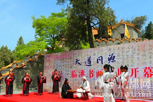 中华龙都网讯(周口报业全媒体记者 李瑞才/文 通讯员 陈兴有/图)5月4日上午,“大道同源”——鹿邑·临洮书画联展活动在鹿邑县明道宫景区开幕。此次活动由甘肃省临洮县人民政府和鹿邑县人民政府共同举办,精选两地137位书画艺术家140余幅作品在鹿邑展出。鹿邑县领导武卫东、刘银、宋克言、王玉超和临洮县委常委、宣传部长郭志萍等出席开幕式。