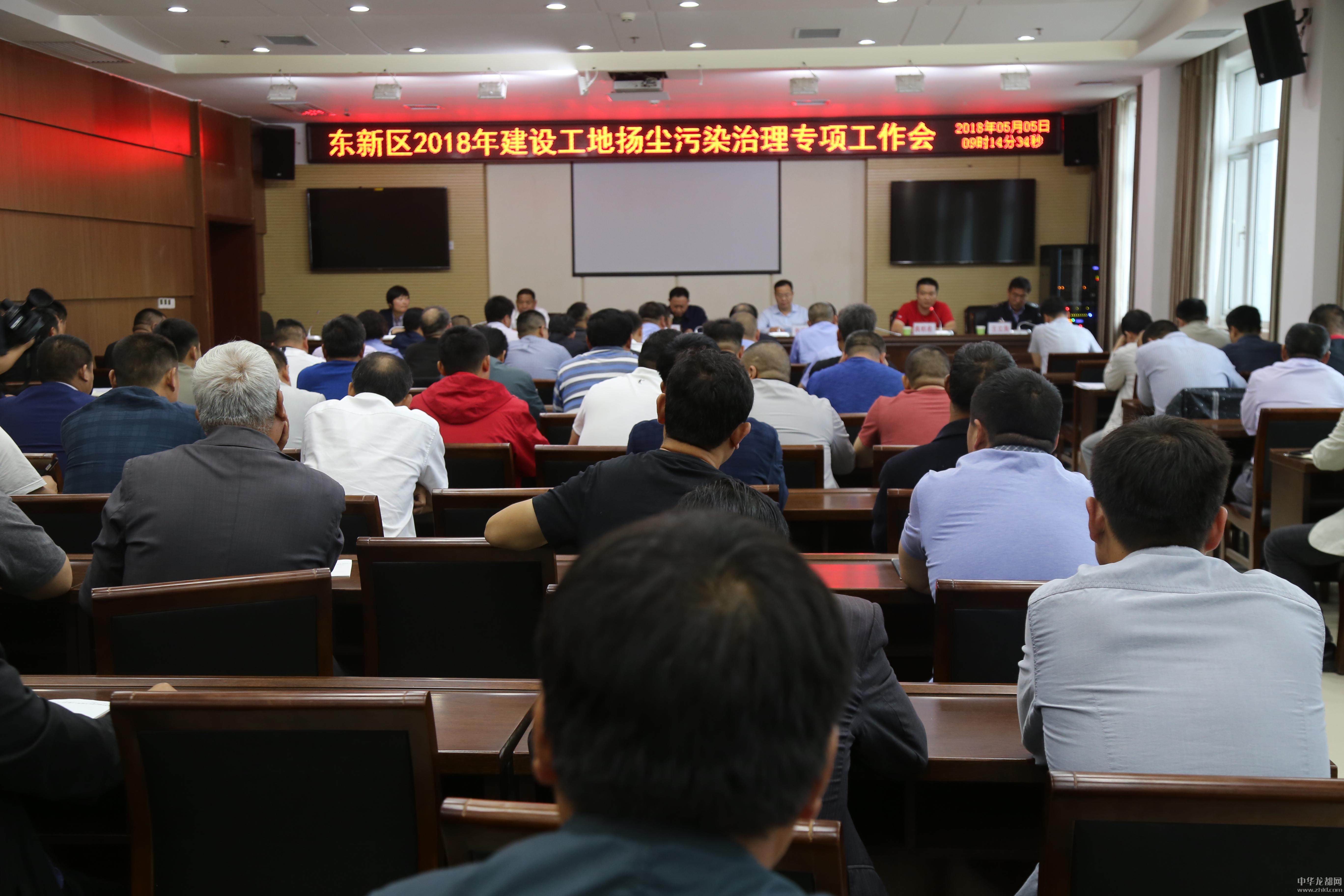 中华龙都网讯(周口报业全媒体记者 张劲松 文/图)5月5日上午,东新区召开2018年建设工地扬尘污染治理专项工作会,市环保局局长方万政,东新区管委会主任张建党、副主任赵兴昌出席会议。各乡办、区住建局、环保局、全区各建设工地负责人等相关人员参加会议。