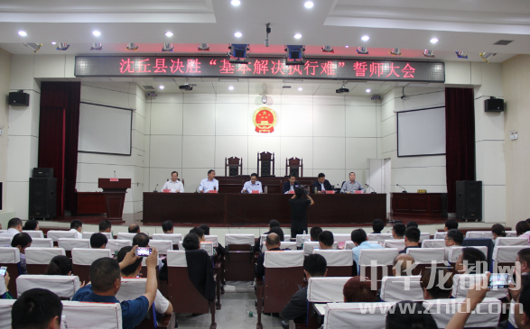 中华龙都网讯(周口报业全媒体记者 牛勇威 陈永团 通讯员 杜鑫)5月11日下午,沈丘县人民法院第一审判庭座无虚席,人大代表、政协委员和来自全县各乡镇街道办、各执行联动单位部门的分管领导以及公检法司相关部门的负责同志、法院全体干警共计300余人,齐聚一堂,共同参加沈丘县决胜“基本解决执行难”誓师大会,吹响了沈丘县决胜决战“基本解决执行难”的冲锋号角。