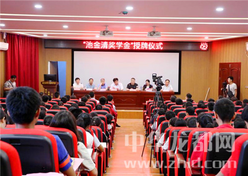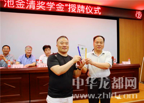中华龙都网讯(周口报业全媒体记者李瑞才 通讯员 郭中华 宁高明)致富不忘桑梓,设奖回馈母校……5月18日下午,“池金清奖学金”授牌仪式在鹿邑二高举行。鹿邑县金辉名酒货仓董事长池金清、鹿邑县教体局局长王振言及全校师生代表300多人参加授牌仪式,以对从该校走出去、创业有成并设立奖学金回馈母校学子的池金清先生的义举表示感谢。