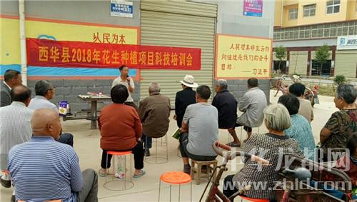 中华龙都网讯(周口报业全媒体记者 张猛 通讯员 张文庆)5月27日上午,西华县西华营镇后楼村文化广场150名村民正在聚精会神地听着县农科所专家讲解花生种植技术和病虫害防治方法。