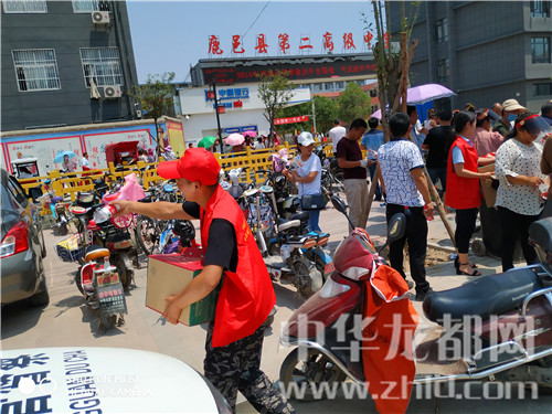 中华龙都网讯(周口报业全媒体记者 李瑞才 通讯员 胡洪涛)6月7日上午,鹿邑7239名高三学子信步走入考场顺利参加高考。记者在鹿邑五个考点现场走访时看到,为高考保驾护航的不仅有公安交警、电力、通讯、卫生、城管、环卫等政府职能单位和部门,还有广大志愿者和很多爱心企业以及社会各界也都参与其中,免费送水、免费送餐、爱心送考……各种爱心场面汇聚成一股强大的社会助考力量。