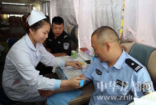上午10时,特巡警大队参与无偿献血的民警、辅警准时来到县城国芳广场采血点,他们认真聆听医生讲解献血过程中应该注意的事项后,按照医生的要求,填写献血单,进行量血压、血样化验,积极配合医护人员进行采血工作,良好的警容风貌得到了现场医护人员的高度赞扬。