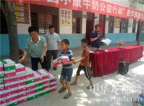 中华龙都网讯(周口报业全媒体记者 张猛 通讯员 郭金磊)6月15日,西华县奉母镇党委和西华县教体局派驻奉母扶贫工作队在前邵小学举行 “中国小康牛奶公益行动----西华捐赠仪式”。活动为该校学生捐赠牛奶80余箱。