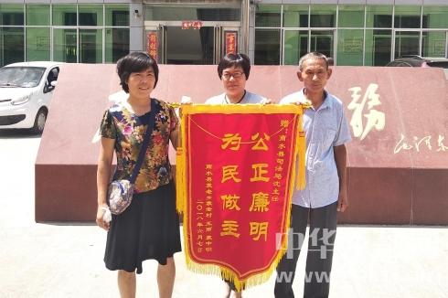 中华龙都网讯(周口报业全媒体记者 付永奇 通讯员 王飞) 6月18日,商水县袁老乡袁 老村的王某、袁某二人专程来到县法律援助中心,将一面印有“公正廉明 为民做主”的锦旗 送到工作人员手中,以表达对县法律援助中心和援助律师的感激之情。