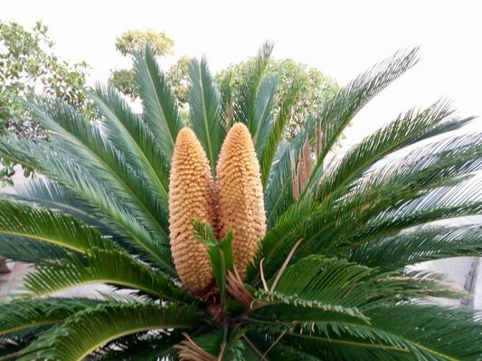 中华龙都网讯(周口报业全媒体记者 张志新 文/图)“千年铁树开了花,万年枯藤发了芽”“铁树开花,哑巴说话”,这都是形容难得一见的奇迹。这不,周口市疾控中心院内盆栽的铁树继往年开花之后,今年又开花了,而且有3棵铁树开的还是双花,令人惊奇万分。