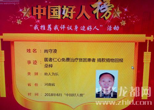 6月29日,记者从太康县文明办获悉,太康县常营镇沙庄村尚守凌医者仁心,20年累计捐款捐物数500余万元回报桑梓,光荣入选6月份助人为乐类中国好人榜。目前,该县入选中国好人榜人数已达38人。