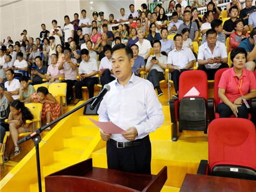 最后省十三届运动会(周口)筹备会副主任、副市长王少青宣布省第十三届运动会青少年篮球赛开幕。