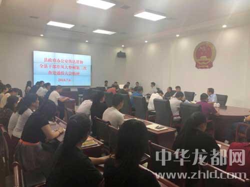 中华龙都网讯(周口报业全媒体记者李瑞才 通讯员 普德连)7月6日下午,鹿邑县政府办公室召开会议,传达贯彻全县干部作风大整顿第三次查处通报和创文创卫会议精神。要求全体党员干部要提高政治站位,树立责任意识,增强使命观念,对标整改;要敢担当,真干事,干实事,工作落实到位不走样,以实际工作成绩检验作风纪律整顿效果。