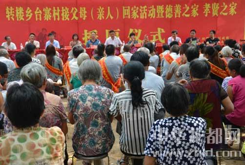中华龙都网讯(周口报业全媒体记者 马治卫 通讯员 徐伟)太康县转楼乡台寨村接父母(亲人)回家活动暨德善之家孝贤之家授匾仪式于7月6日在台寨村村北小树林举行。