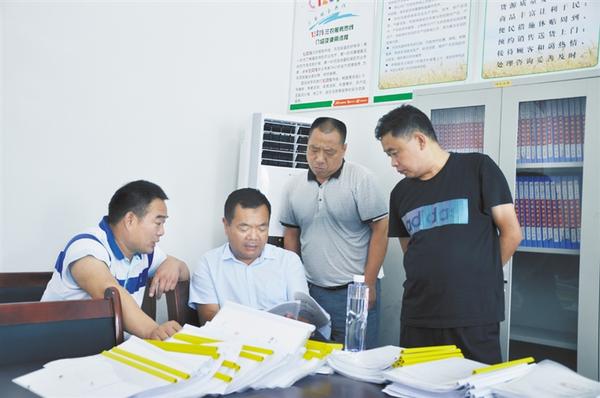 商水县加大工作力度规范脱贫攻坚档卡建设,填好、管好、用好精准扶贫档案,真实、完整、准确、全面记录扶贫工作过程,确保精准扶贫不落一户、不漏一人。图为7月11日上午,商水县扶贫办工作人员在老城办事处曾庄村认真检查扶贫档案建设情况。记者 付永奇 摄