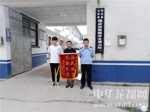 中华龙都网讯(周口报业全媒体记者 姬慧洋 通讯员 黄长春 文/图)“感谢警察同志救了我的父亲。”7月13日上午,项城市民刘先生专程赶到沈丘县公安局河北派出所,将一面书写着“为民服务、尽职尽责”的锦旗敬献给民警祝树华、王宁,感谢他们奋不顾身搭救投河轻生的老父亲。