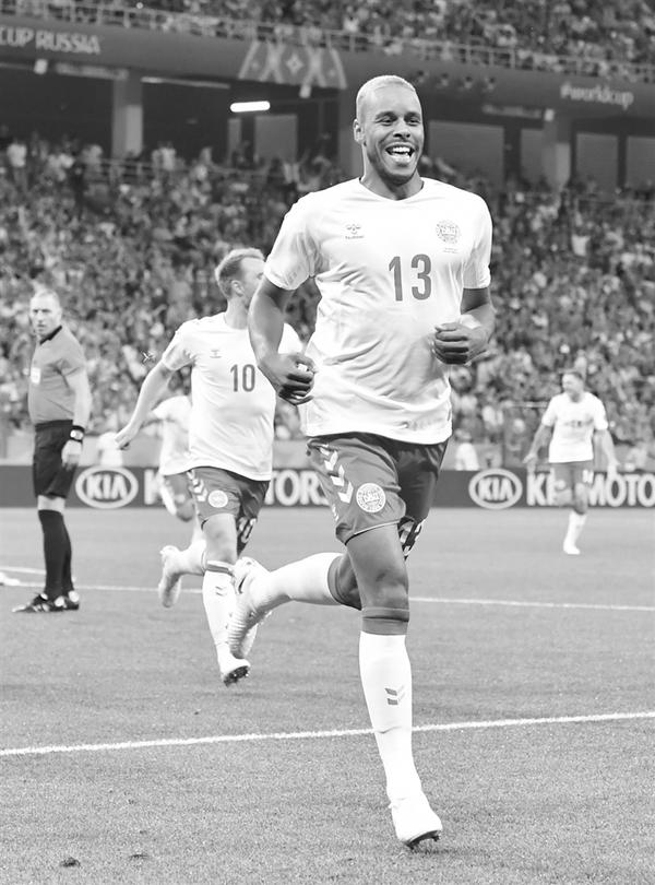 图4为本届世界杯最快进球球员——丹麦队马·约恩森。开场仅57秒,他就打入了本届世界杯最快进球。