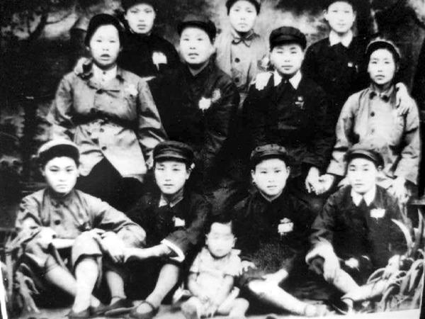 1954年,申凤梅(右)、申秀梅与小演员合影留念。