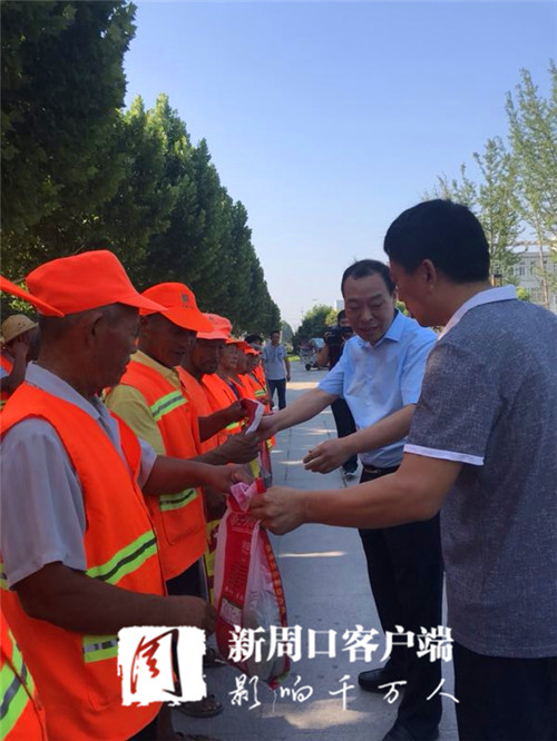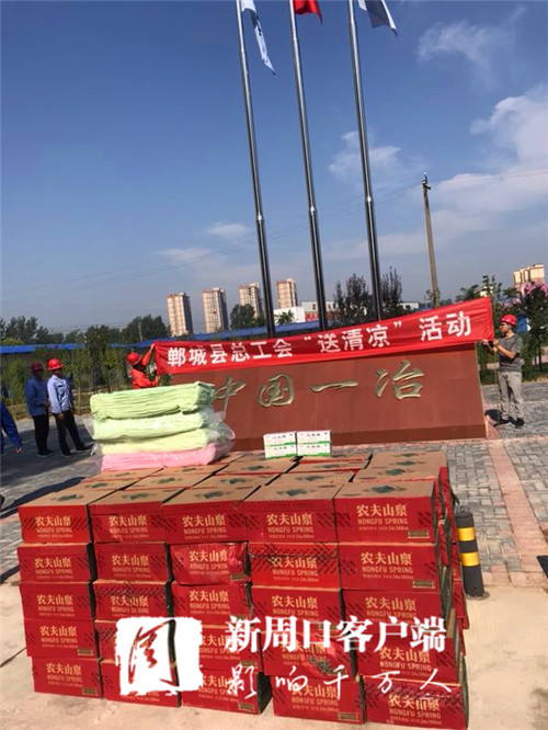 7月20日上午,郸城县总工会开展夏季“送清凉”活动,慰问了冒着酷暑坚守工作岗位的环卫工人、执勤交警和洺河生态水系治理一线建筑工人,为他们送去了毛巾、白糖、绿豆、风油精、洗衣粉、矿泉水等防暑降温物品。