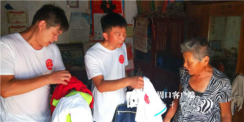 捐赠仪式上,太康县商务局局长李晓虹和清集镇党委书记吴文静向张子颖村捐赠爱心体恤衫。随后由各位领导带队向困难群众发放爱心体恤衫,并鼓励他们树立信心、克服困难,早日走向富余。