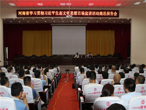 为深入贯彻习近平生态文明思想的精神内涵,认真贯彻落实中央、省委关于加强生态文明建设的决策部署。7月23日,河南省学习贯彻习近平生态文明思想百场宣讲活动鹿邑报告会在县党校报告厅举行。报告会由河南省委讲师团形势任务教研室主任刘新鹏主讲,县委书记梁建松主持报告会并讲话。李刚、雷申、韩林、张丽娟、侯自峰、闫家明、武卫东等县处级领导以及各乡镇(办事处、管委会)县直有关部门负责人共同聆听报告。