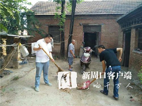 如果环境卫生保持不好,村民的院落就成了滋生蚊虫的“温床”。24日早上,大家再一次来到张庞村,宣传扶贫攻坚、“六村共建”等政策,动手帮群众打扫院落卫生,趁天好帮村民晒粮食。副部长宋斌在走访时听说贫困户刘金才近日肺病复发,呼吸困难,“心里上不来气儿”,赶紧拨打“120”,联系镇卫生院医生接诊,并和驻村第一书记霍辉、驻村队员李富军、帮扶队员张志华、郭威自掏腰包,凑了500块钱交到刘金才老伴手里,解了燃眉之急。