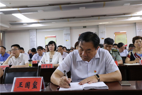 王国玺表示,曾琰珉同志站在讲政治的高度,形象生动的作了一场很精彩、很实用的报告。报告全面系统地宣讲了习近平生态文明思想和全国生态环境保护大会精神,贯彻了省委十届六次全会暨省委工作会议精神,既有深刻的理论阐述,又有生动的事例说明,内容全面、重点突出,对于全县上下深入学习领会和准确把握习近平生态文明思想、推进生态文明建设、打好环境污染防治攻坚战,具有很强的指导性、针对性。为贯彻落实习近平生态文明思想,打好打赢环境污染防治攻坚战,王国玺提出六点要求:一要在提高认识上下功夫,用习近平生态文明思想武装头脑;二要在问题整改上下功夫,补齐环境污染防治攻坚短板。三要在协调联动上下功夫,形成环境污染防治攻坚强大合力。四要在标本兼治上下功夫,健全环境污染防治攻坚长效机制。五要在强化责任上下功夫,确保环境污染防治攻坚有序推进。六要在真督实查上下功夫,保障环境污染防治攻坚工作实效。