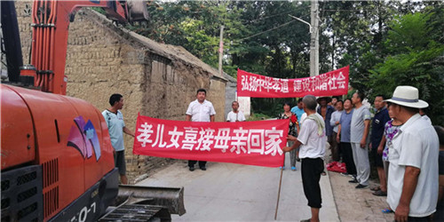 当日早上,秋渠乡高小桥行政村牛桥和孙大庄自然村,乡村干部打着横幅、孝顺儿、媳胸带红花,用架子车拉着老人,后面跟着围观的村民,通过隆重“接老人回家”活动,激励更多人孝老爱亲。