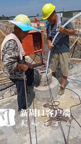 贾鲁嘉苑项目L地块施工现场,建筑工人正在对降水井进行抽水