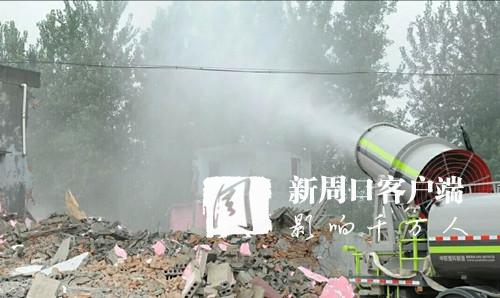 当日上午10时许,记者在拆除现场看到,5台大型拆除机械齐上阵,喷水雾炮车在进行规范化湿法作业。拆除现场,安全员时刻警戒拆除安全工作,确保居民们生命财产安全。