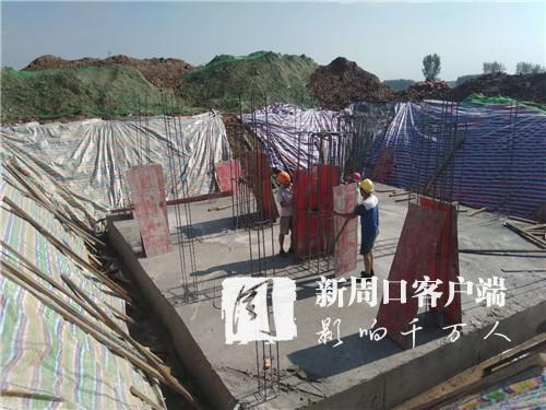 7月26日上午,在川汇区中州大道与新北环路交叉口东南角的爱国主义教育基地施工现场,面积6400平方米的纪念广场雏形初现,广场中央的纪念碑筏板基础浇筑完成,部分广场砖已经运到广场上。