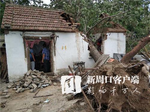 7月26日下午4时,下起瓢泼大雨,刮起了五六级大风。而代体丛老人的两间瓦房猛然间被50公分粗的大树砸塌,大树倒塌位置正好是过去代体丛老俩口居住的床头。