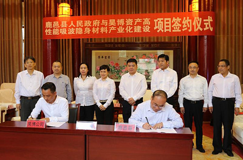 7月30日,鹿邑县人民政府与昊博资产高性能吸波隐身材料产业化建设项目签约仪式在县委黉学堂举行。县委副书记、县长李刚,县委常委、县委办公室主任宋涛,县委常委、统战部长闫家明,县产业集聚区党委书记毛斌以及昊博资产董事长李佳、总经理禹建基等出席签约仪式。