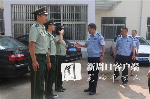 “八一”建军节到来前夕,7月31日上午,周口港区公安分局政委何学民,副局长侯长建、周桂莲带领分局警务综合室民警,前往港区消防工作室慰问消防官兵。