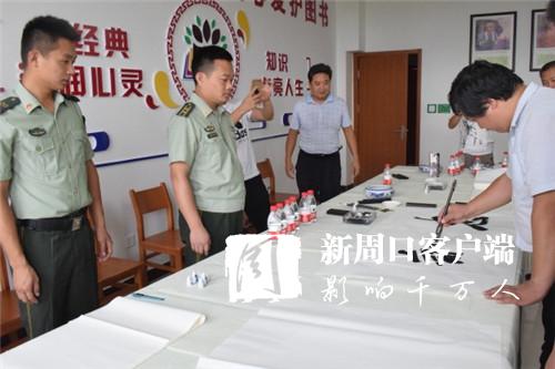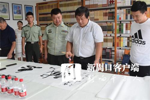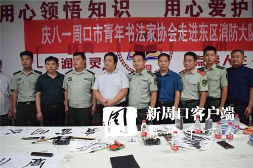 为进一步充实官兵的警营文化生活,喜迎建军91周年,7月30日下午,周口市青年书法家协会会长李为等人走进东新区消防大队,现场挥毫泼墨,用饱蘸感情的书法作品向消防官兵表达了节日祝福。