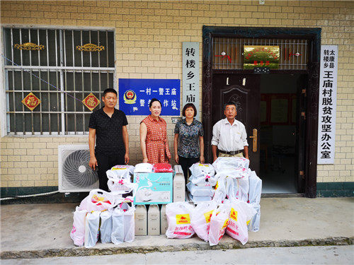 8月4日,市人大代表、太康县爱心企业家薛华杰到转楼乡王庙行政村走访慰问贫困户,为20户贫困户送去夏凉被、T恤衫、鞋子等慰问品。