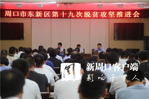 8月6日上午,东新区召开第十九次脱贫攻坚推进会,东新区管委会主任张建党、副主任李湛出席会议并讲话,新区开发指挥部办公室副主任李海涛主持会议。各乡办乡长(主任)、主抓扶贫副职、驻村第一书记、党建联系人、49个村脱贫攻坚责任组长和村支部书记、区扶贫办全体人员计100余人参加会议。