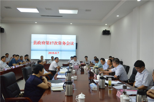 8月7日上午,鹿邑县委副书记、县长李刚在县政府多功能会议室主持召开县政府第17次常务会议,会议听取并研究了县住建局、财政局、综合投资公司、林业局、卫计委、攻坚办等部门提交的相关议题。专项研究了河南省生态文明建设目标考核方案;学习了《河南省行政规范性文件管理办法》等文件;传达了7月25日省长办公会议纪要,并安排部署了当前阶段重点工作任务。县领导陆志杰、王晓征、翟杰、何新敏、张勇、王玉超、曹玉娟、毛斌出席会议。政府办、住建局、财政局等县直各委局和部分乡镇办事处主要负责人参加会议。
